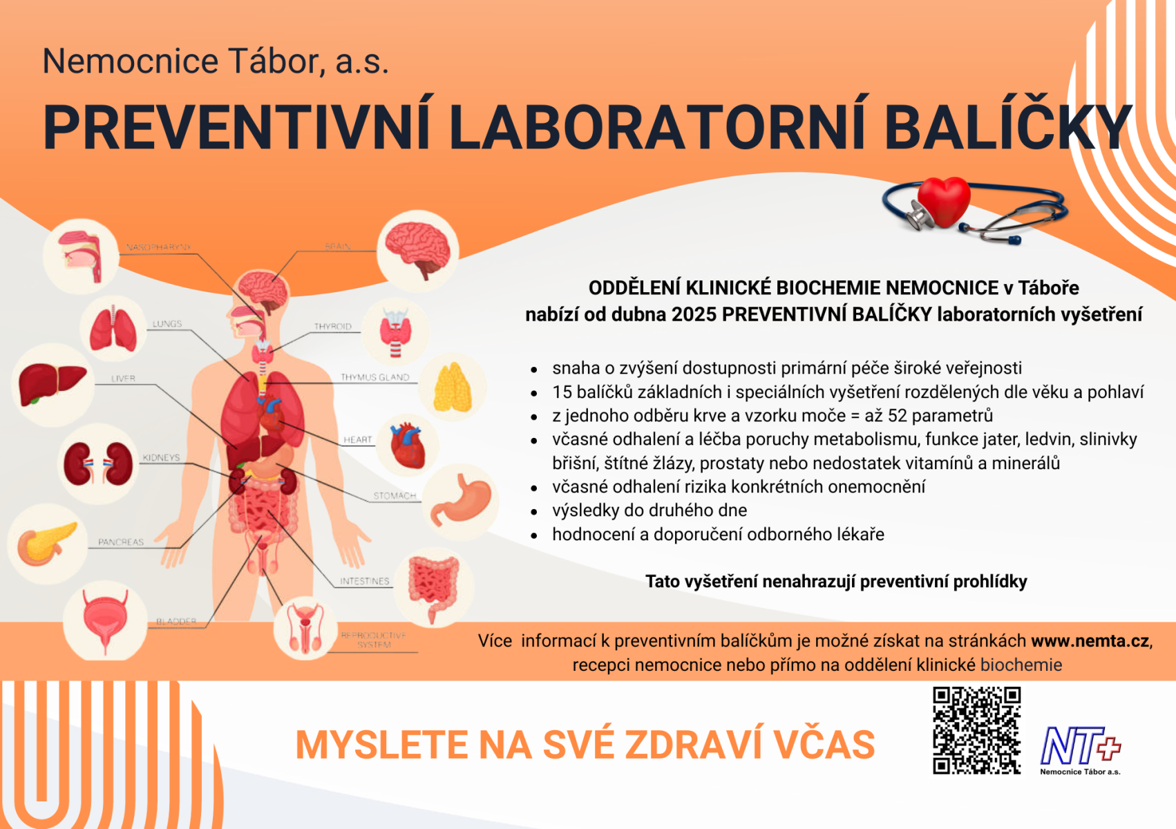 Praktické rady při nástupu do nemocnice,informace o krátkodobé a dlouhodobé péči,s tím související práva a povinnosti pacienta, příspěvky a dávky, invalidita, předepsání zdravotních pomůcek, lázeňská péče. Neopomenuty jsou kontakty sociálních a zdravotních služeb Jihočeského kraje, nemocnic, léčeben dlouhodobě nemocných apod. Naleznete zde informace o výrobcích a službách vedoucí ke zlepšení kvality života. Neváhejte si publikaci vyzvednout v recepci naší nemocnice!
