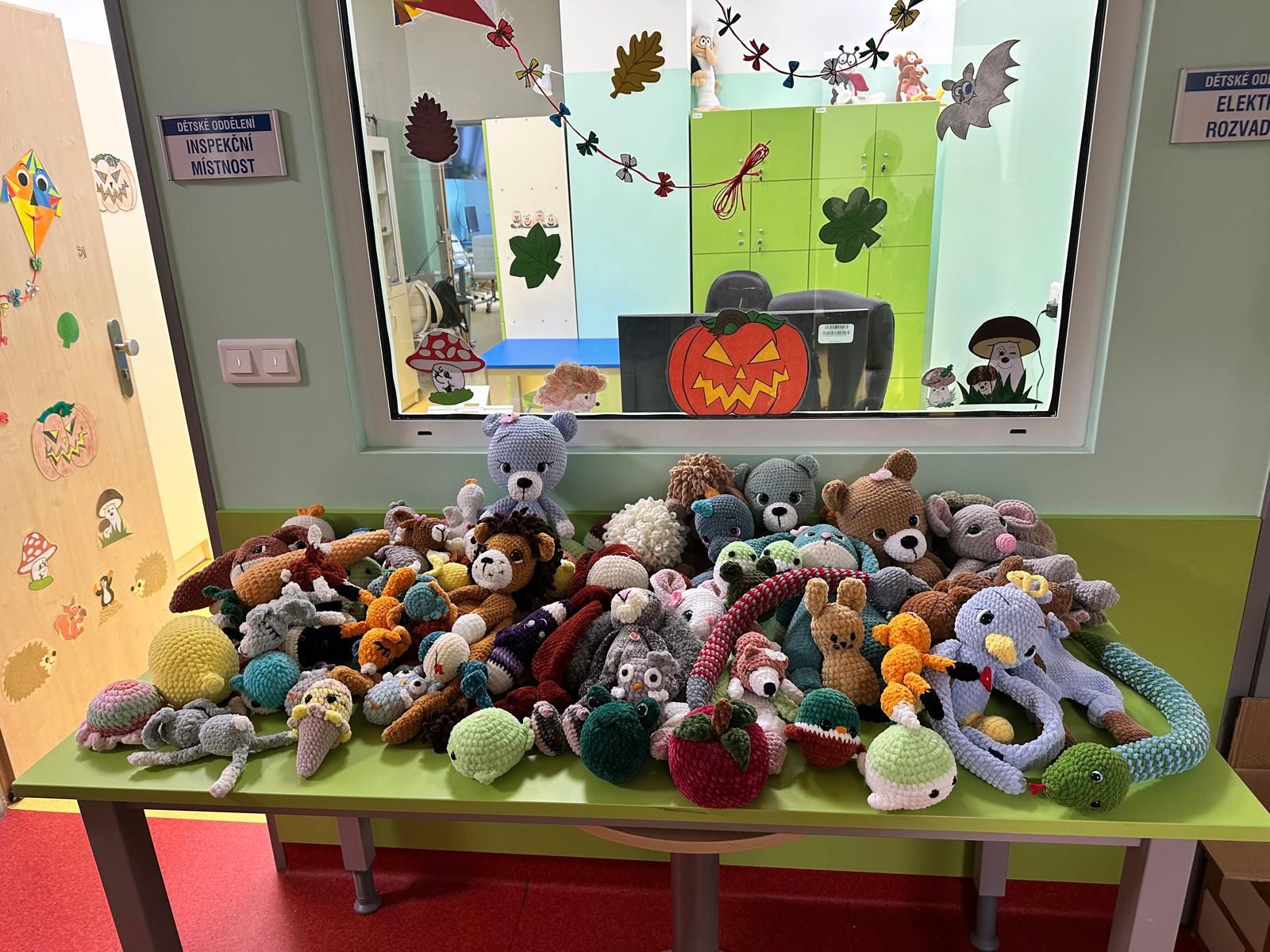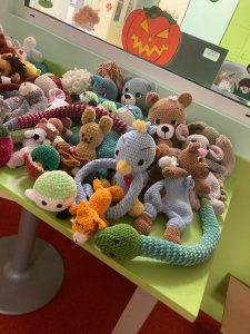 Desítky háčkovaných zvířátek nám daroval Klub háčkování z Veselí nad Lužnicí.