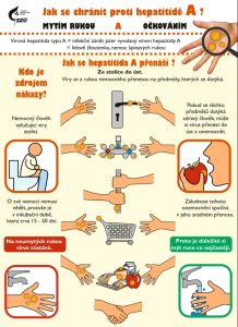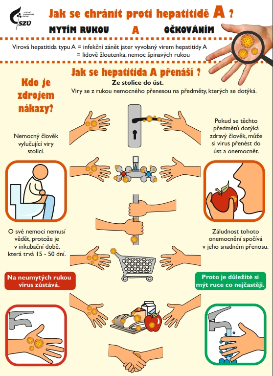 Virová hepatitida A se přenáší zejména fekálně-orální cestou, tedy prostřednictvím kontaminovaných povrchů, včetně rukou nebo kontaminované potravy a vody. Onemocnění se obvykle projevuje únavou, nevolností, zvracením, zvýšenou teplotou a zežloutnutím kůže nebo očního bělma, může se objevit tmavá moč a světlá stolice. Ve většině případů má nemoc dobrou prognózu a dochází k úplnému zotavení.