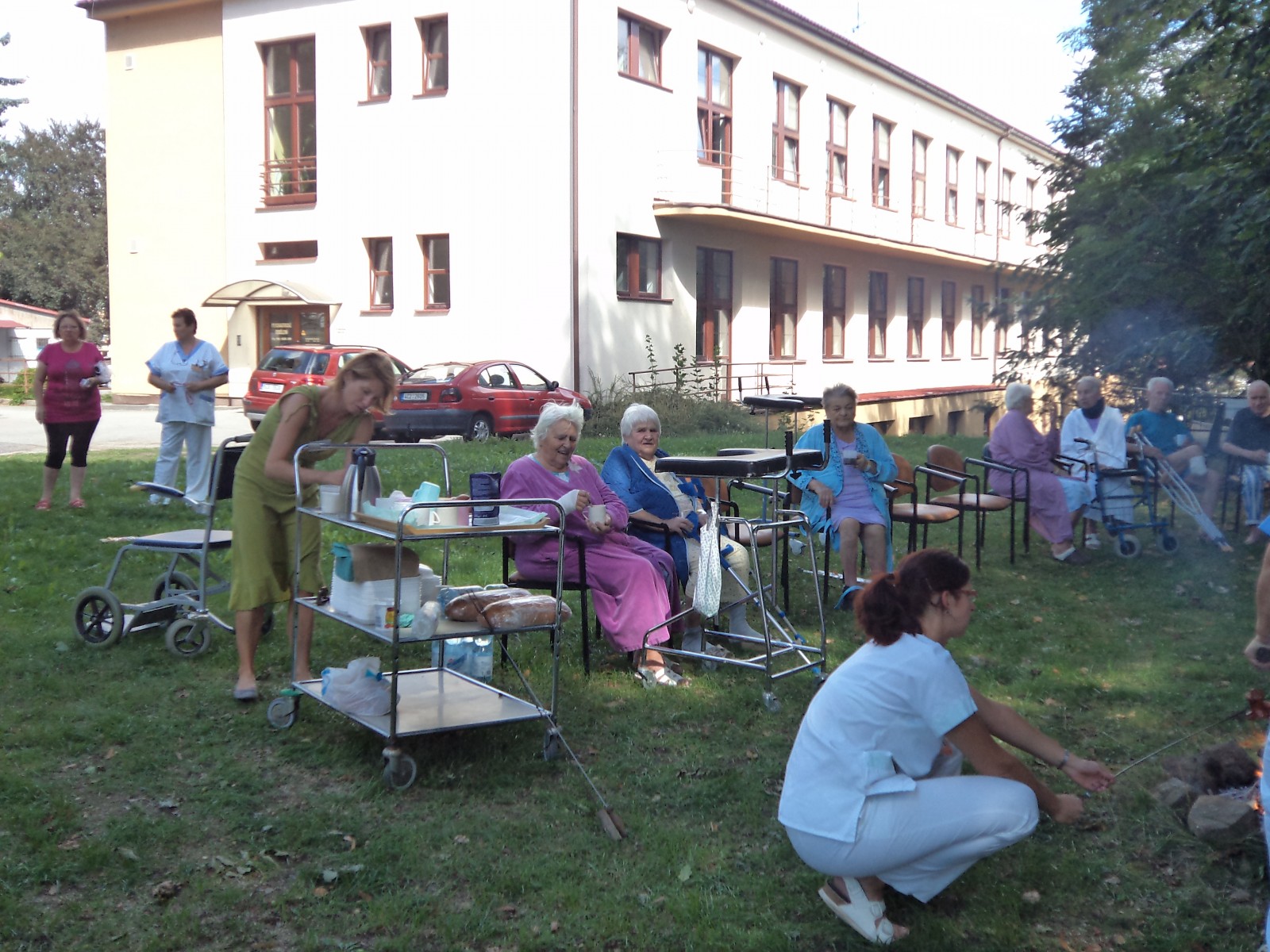 Dovolte nám, abychom se v krátkosti ohlédli za letními prázdninami. V pátek 28.8.2015 totiž Dobrovolnické centrum Nemocnice Tábor uspořádalo nezapomenutelnou akci pro pacienty a jejich blízké – posezení u táboráku a opékání vuřtů. Krásné počasí vylákalo před budovu Oddělení následné péče pacienty spolu s doprovodným personálem. Oheň se podařilo zdárně rozdělat, opéct přinesené „pamlsky“ a užít si to se vším všudy. Úsměvy na rtech pacientů byly odměnou pro veškerý personál. Děkujeme za práci Dobrovolnického centra a těšíme se na další příjemná setkání.