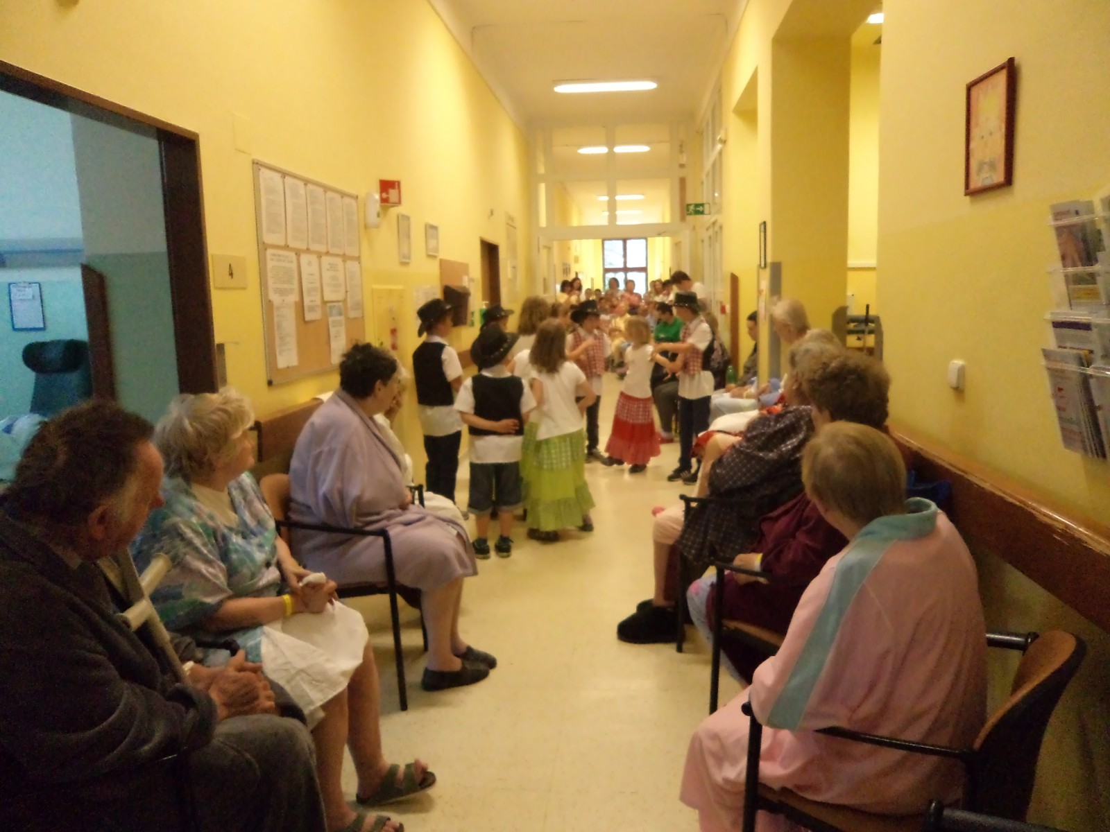 Pod vedením paní učitelky Libuše Čulíkové a vychovatelky paní Jany Janouškové děti zazpívaly a zatančily 30-ti pacientům z oddělení následné péče a psychiatrie. Nálada pacientů i přihlížejícího personálu byla veselá. Rozzářené oči pacientů byly odměnou nejen pro učinkující, ale především pro pracovníky dobrovolnického centra, kteří tuto akci uspořádali. Někteří pacienti se neubránili slzám dojetí.