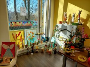 Prostory psychiatrického oddělení „ožily“ před Velikonocemi prodejní výstavou. Veškeré výrobky vznikly v terapeutických dílnách psychiatrického oddělení a autory byli samotní pacienti. Ti vytvořili vskutku jedinečné, rozmanité, veselé, barevné …… zkrátka krásně velikonoční dekorace. Děkujeme jim i terapeutkám a těšíme se na další prezentaci jejich tvořivosti.