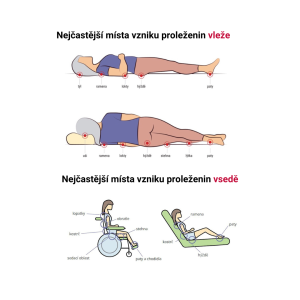 - Pravidelné kontrolování pokožky na místech s největším rizikem vzniku dekubitů.