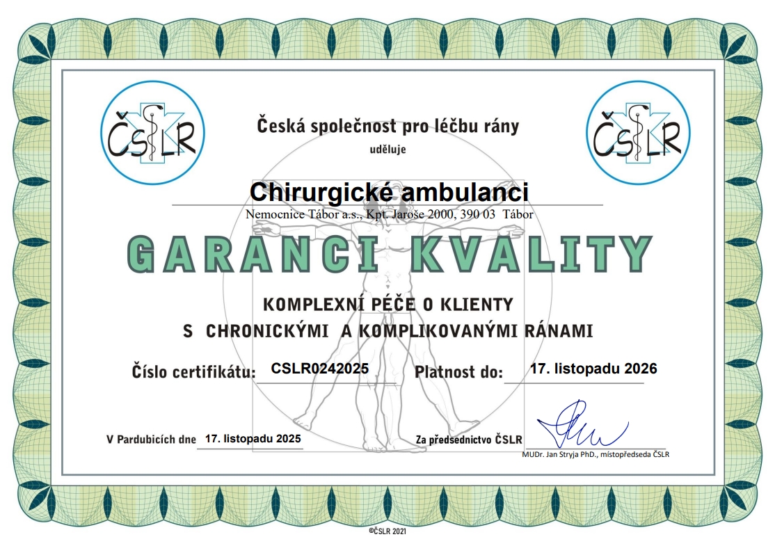 Naše pracoviště je akreditovaným pracovištěm pro všeobecnou chirurgii a traumatologii. Žádáme o prodloužení akreditace v oboru onkochirurgie.