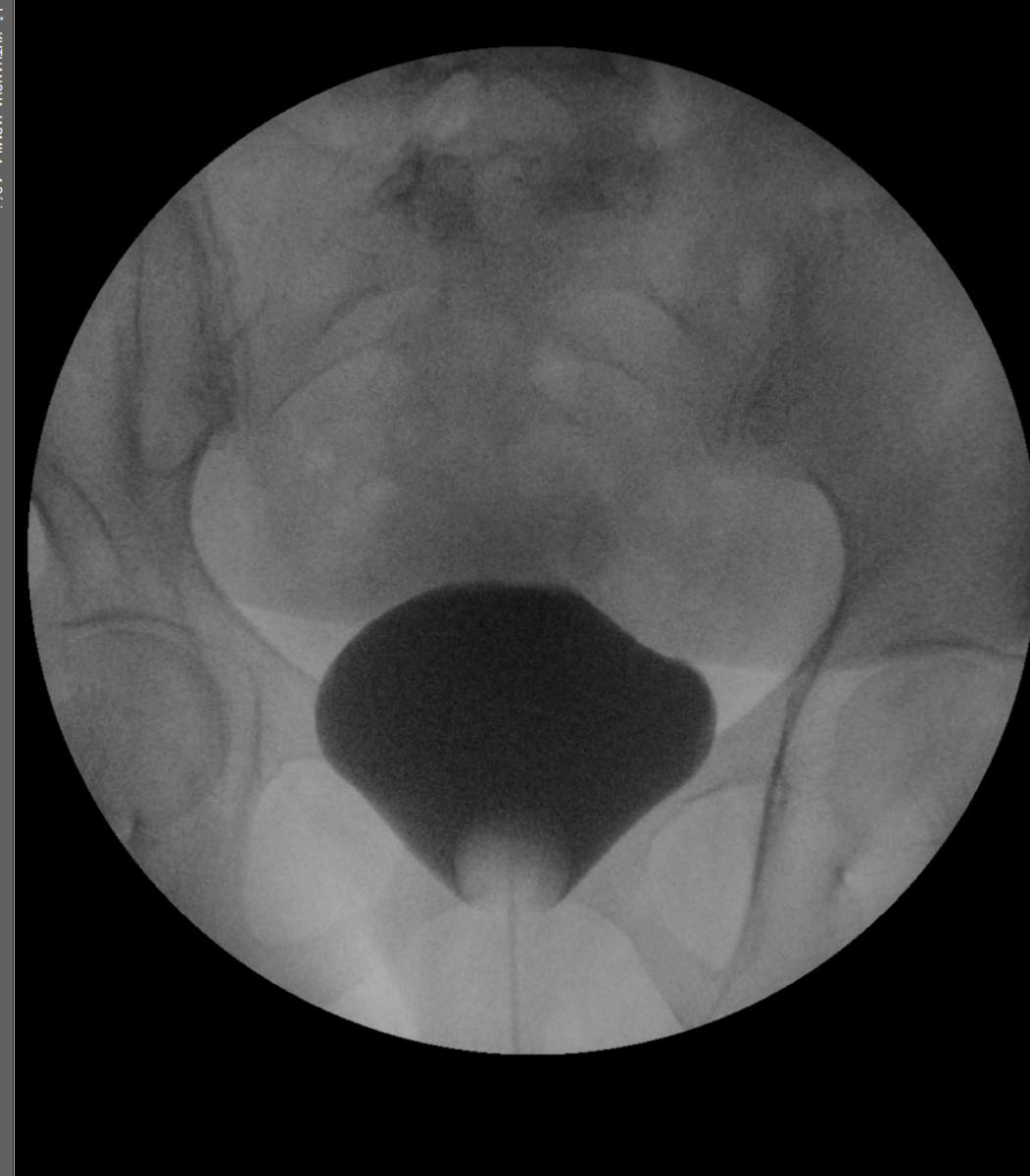 Kontrastní látka je hadičkou (s cévkou) aplikována do močového měchýře či močové trubice. Po naplnění močového měchýře se zpravidla pacient vymočí v RTG kontroly.