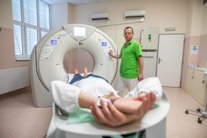 V čekárně před vyšetřením vyplníte sami nebo ve spolupráci se sestrou Informovaný souhlas s CT vyšetřením, jehož součástí je i dotazník, kde se ptáme na léky, které užíváte, na Vaše nemoci a alergie, u žen na těhotenství).
