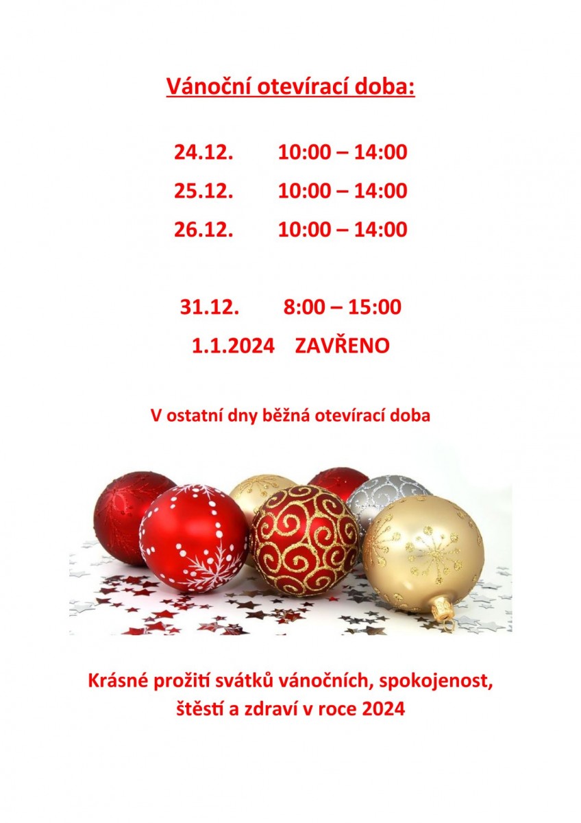 | 1.1.2022 | z provozních důvodů ZAVŘENO |